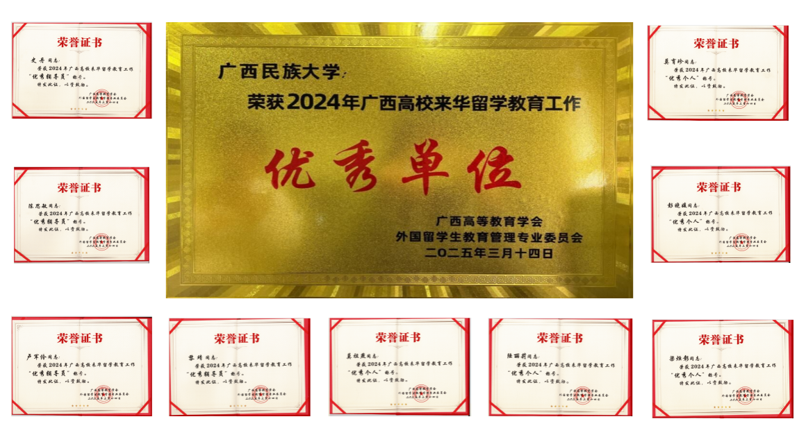 3月14日,广西高等教育学会外国职工教育管理专业委员会2024年年会暨表彰大会在桂林理工大学召开,公司国际合作与交流处周艳鲜处长一行3人参加了会议。会上对2024年广西来华留学教育优秀单位及优秀个人进行表彰。公司荣获2024年广西高校来华留学教育“优秀单位”称号,这是公司2018年以来连续七年获此荣誉。公司陈思敏等4名教师荣获“优秀辅导员”称号,莫育珍等5名教师荣获“优秀个人”称号。