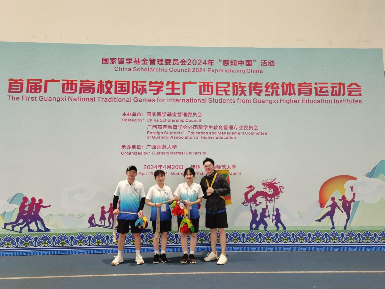 4月19日至21日,由国家留学基金管理委员会和广西高等教育学会外国职工教育管理专业委员会(简称广西留管学会)联合主办的首届广西高校国际员工广西民族传统体育运动会暨中国文化体验活动在桂林举行。来自全区30所高校280余名中外师生参加了此次活动。公司选派了越南、老挝和印尼8名国际员工代表参加此次民族传统体育运动会。