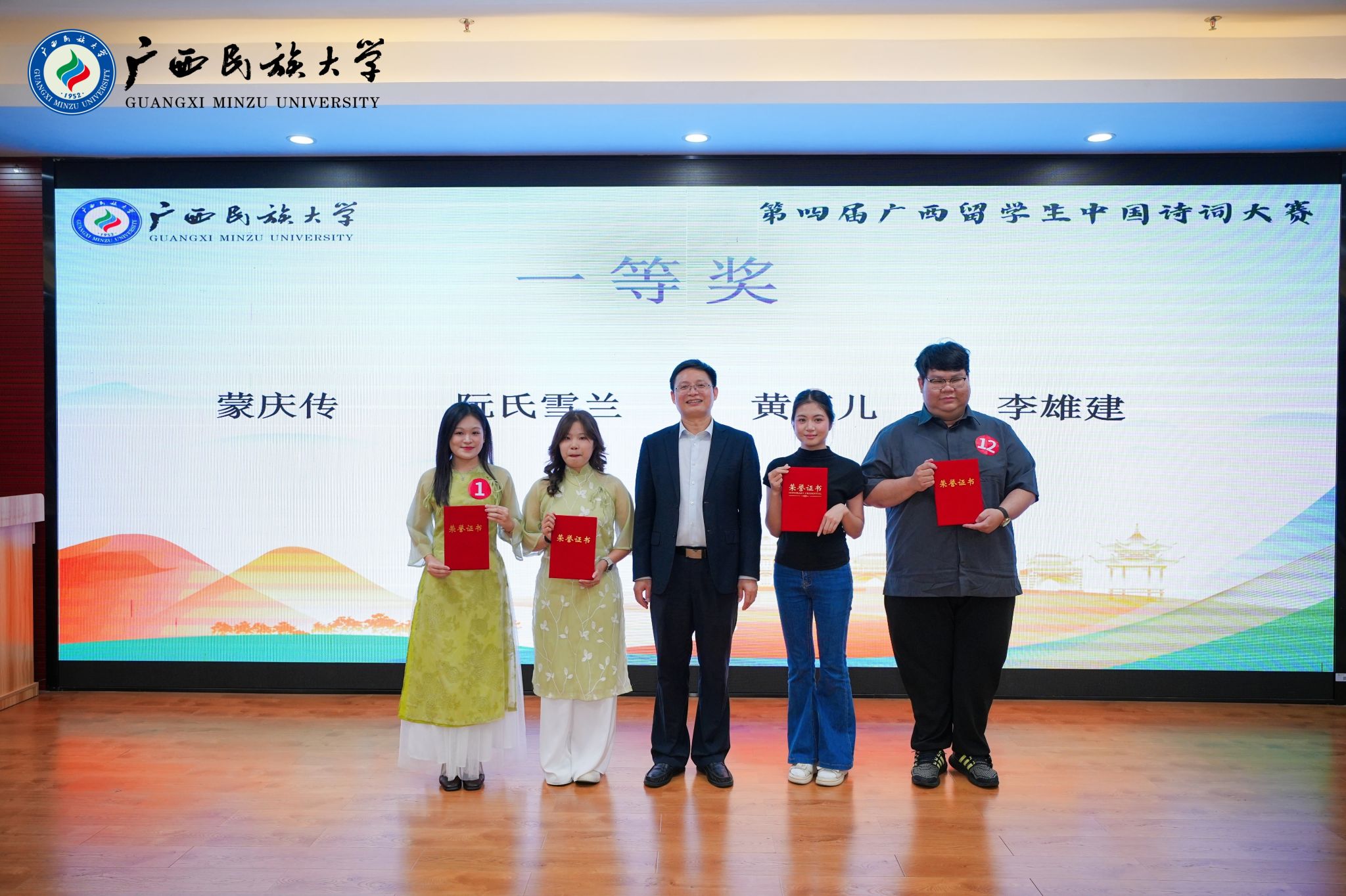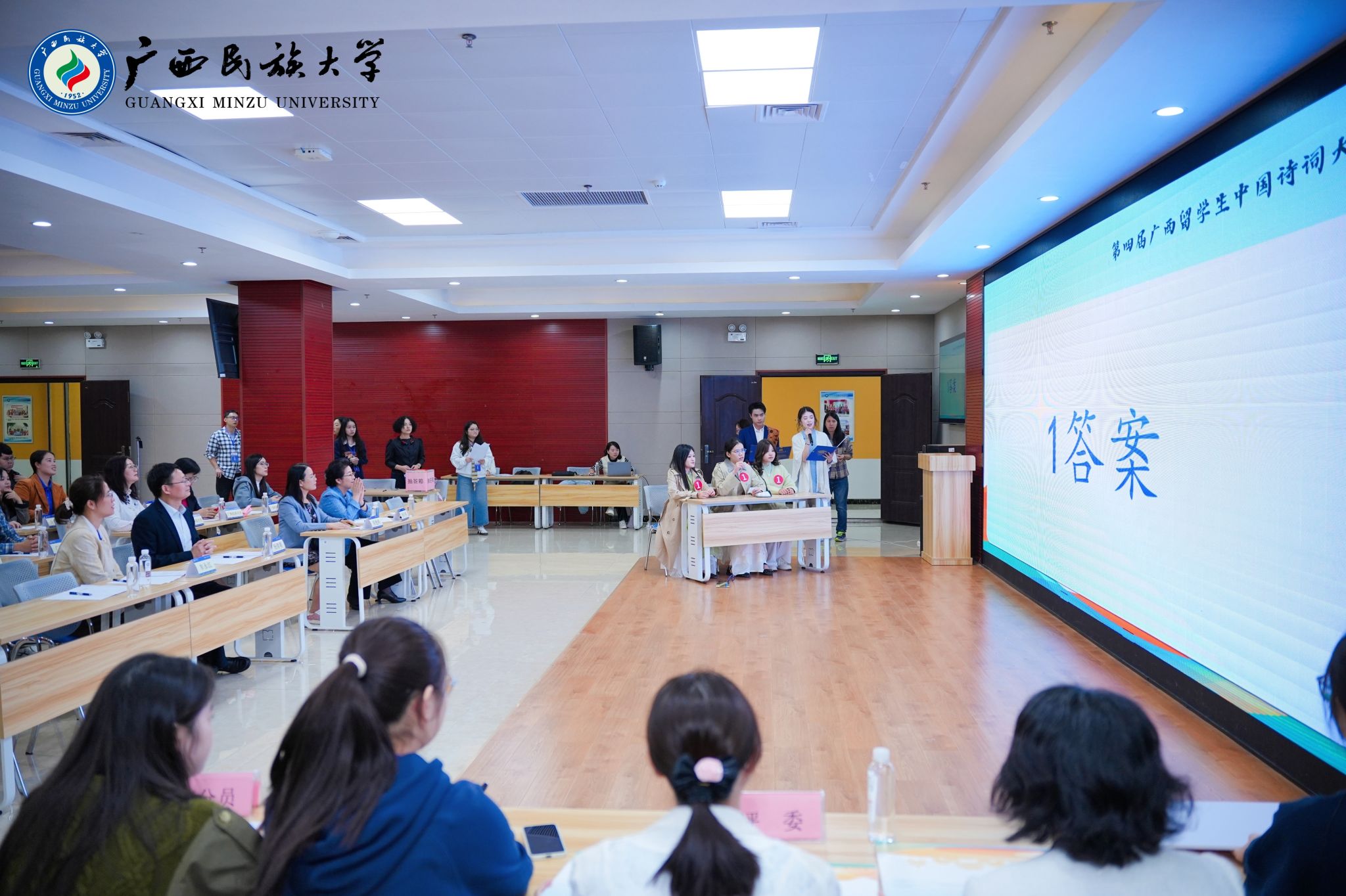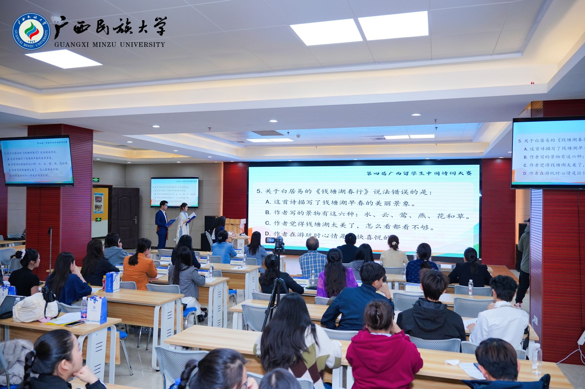 【老员工通讯社报道】10月25日,第四届广西职工中国诗词大赛在william威廉英国官网相思湖校区举行。本次大赛由广西高等教育学会外国职工教育事业管理专业委员会主办,william威廉英国官网国际交流与合作处(william威廉英国官网)承办,共有来自广西大学、广西师范大学等区内14所高校的40名职工参加。广西大学、william威廉英国官网获得团体赛一等奖。广西大学职工阮氏雪兰、蒙庆传,william威廉英国官网职工黄燕儿、李雄建获个人赛一等奖。
