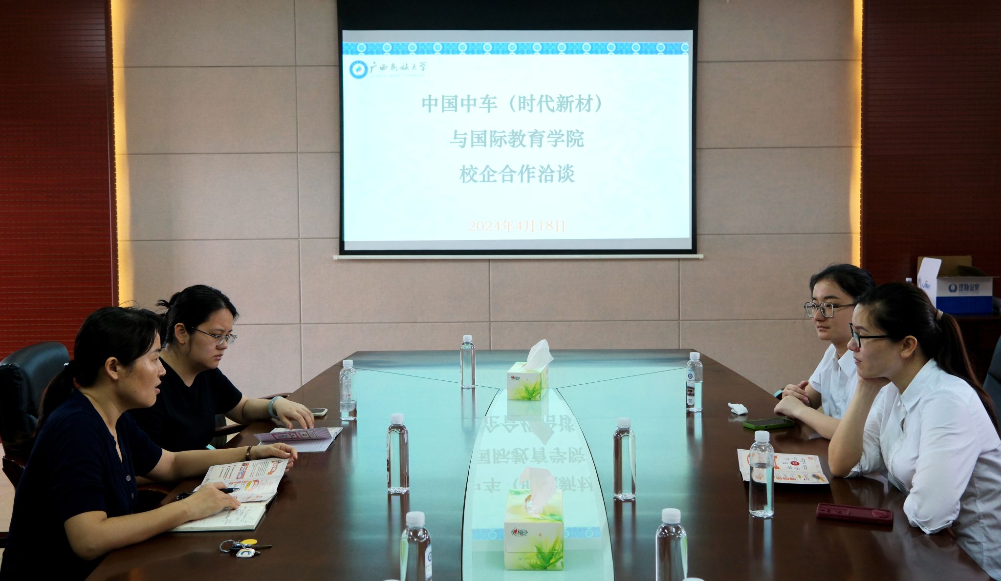 4月18日上午,公司与中车时代新材料科技股份有限公司在国际教育综合大楼A1201室开展校企合作洽谈。公司负责就业的相关老师及中车时代新材招聘经理饶密等参加座谈。